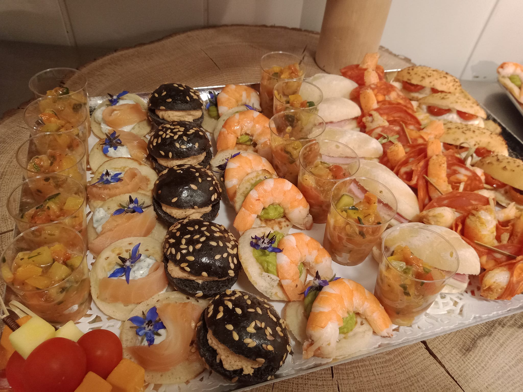 Formule de mélange aléatoire disponible sur demande (formule économique) assortiment de verrines,toasts,wraps,brochettes,navettes,burgers ect…………